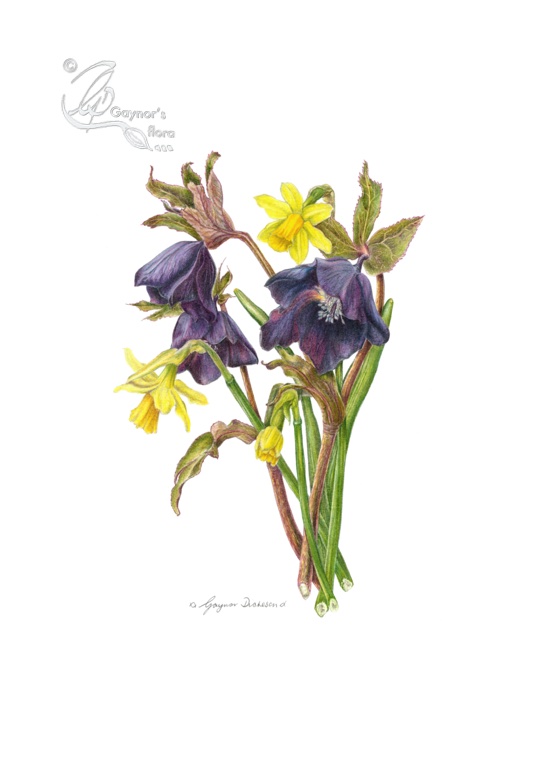In this instance the dark Hellebores set off the yellow of the daffodils very well.