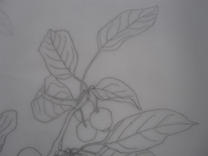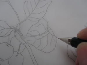 I trace the line drawing onto tracing paper, using a 0.3 clutch pencil.