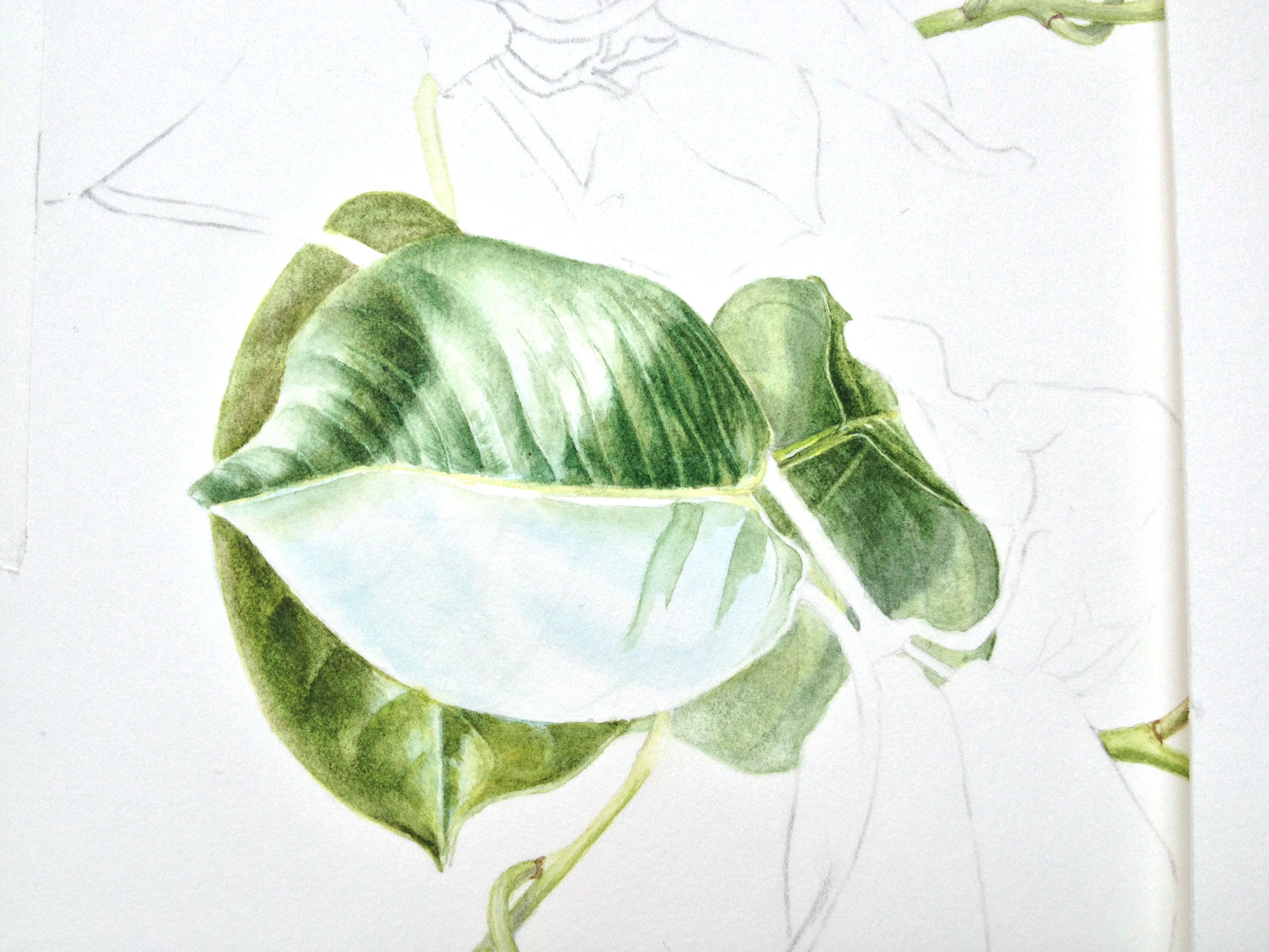 The first whole leaf actually took a whole day and I will let you be the judge as to its success or not. The result is still not as I am wanting it and I can’t even define what it is I want. I am very much a detail person, and it may be that I am concentrating too much on this without thinking enough of the overall result.