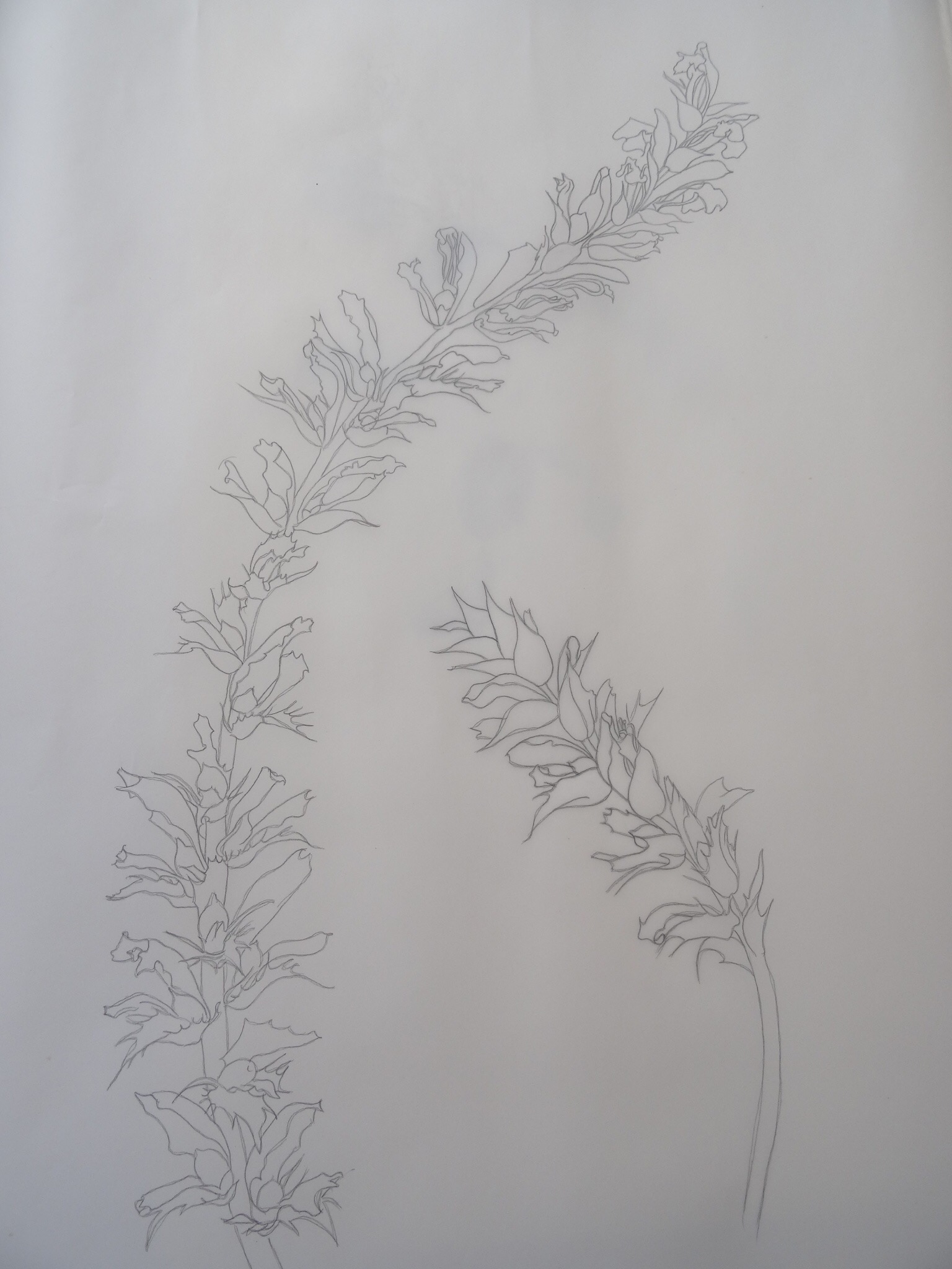 On Friday and again on Sunday afternoon after church I was able to continue with my Acanthus ( in case you wondered what my new picture was all about). I finished the sketch and transferred it to the paper I am using for the final work. A warning, the following picture is not the whole composition as it will contain a third element – hopefully. It is a large project, but hopefully it will go well.