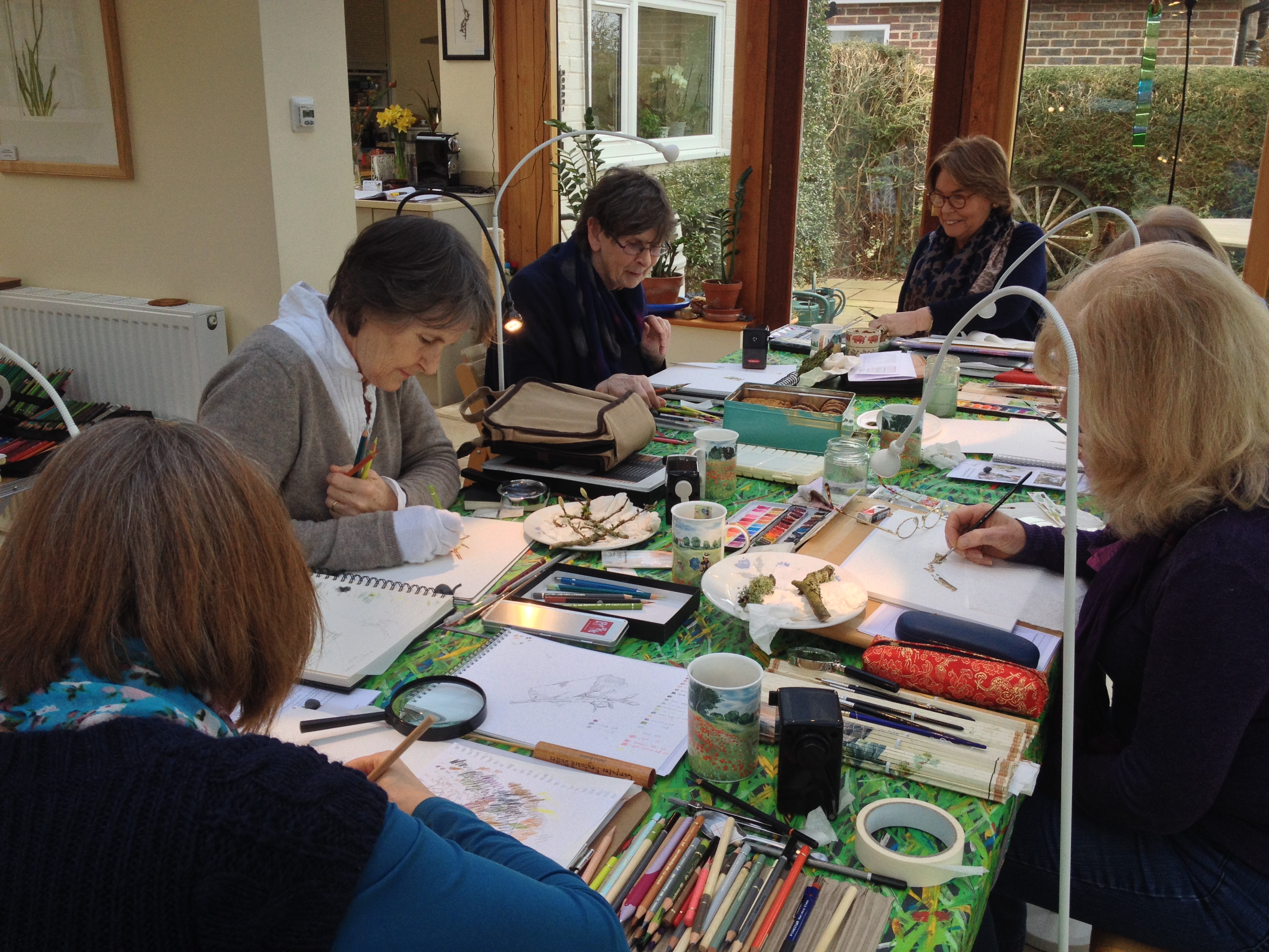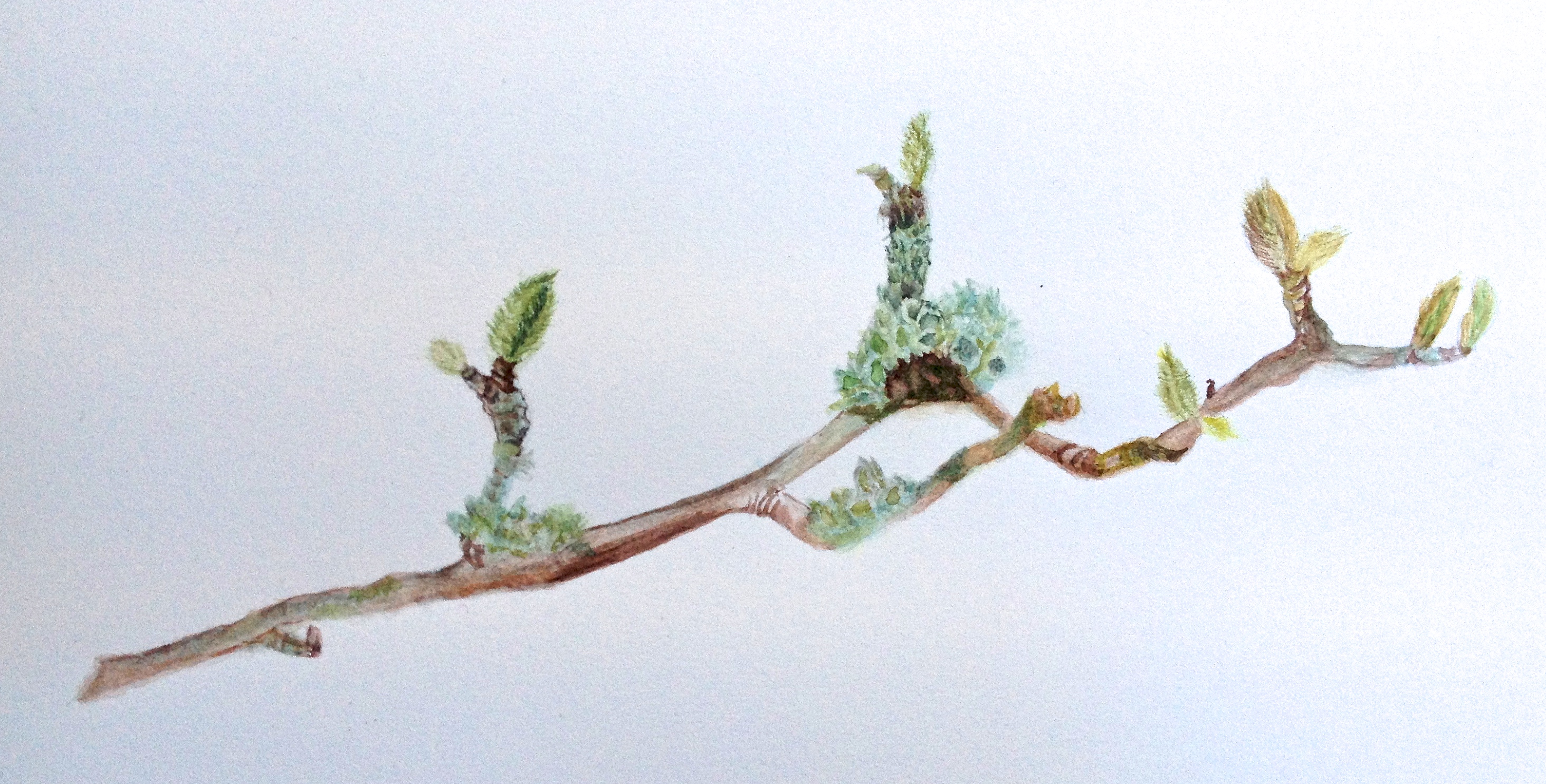 On one occasion I showed the group how to paint the furry terminal bud of a Magnolia soulangeana, first in watercolour and then in coloured pencil. It was quite amusing to hear the comments and the competition in assessing which bud looked best and which medium best suited that topic.