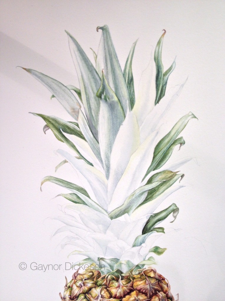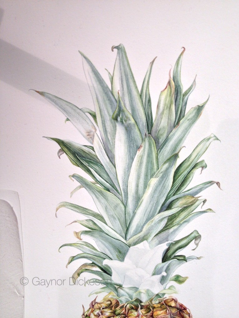 The customer has seen the finished pineapple picture and is pleased with the results. Whew! It still has to be framed, but the recipient will not be getting it for a few more months. However, I have been given permission to release it.