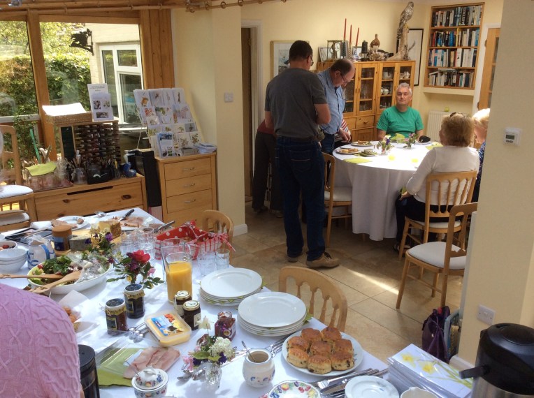People started arriving on Thursday, we met for supper on Friday, then from Saturday afternoon we hosted everything from home!!!. Afternoon tea, a super dinner provided by local caterers ( I couldn’t do it), and then Sunday brunch as people waved goodbye until the next reunion. I gave the caterers earplugs (which I don’t think they used), although I really felt sorry for the people downstairs in the pub where we had our Friday meal. Our neighbours sensibly went out for the evening on Saturday.