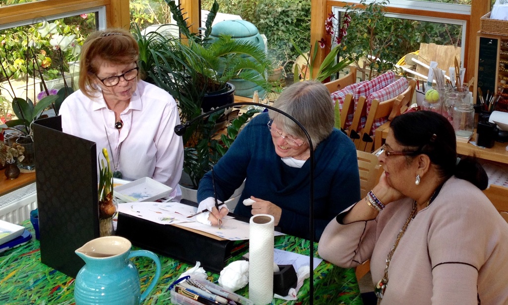 This last weekend I had a very select group enjoying the peace and quiet of Bosham as well as individual botanical art tuition. The weather is gradually improving and picking subjects in the garden (the Magnolia) or in the vicinity (Eucalyptus), is no longer a trial. The following are a couple of photographs from the weekend: