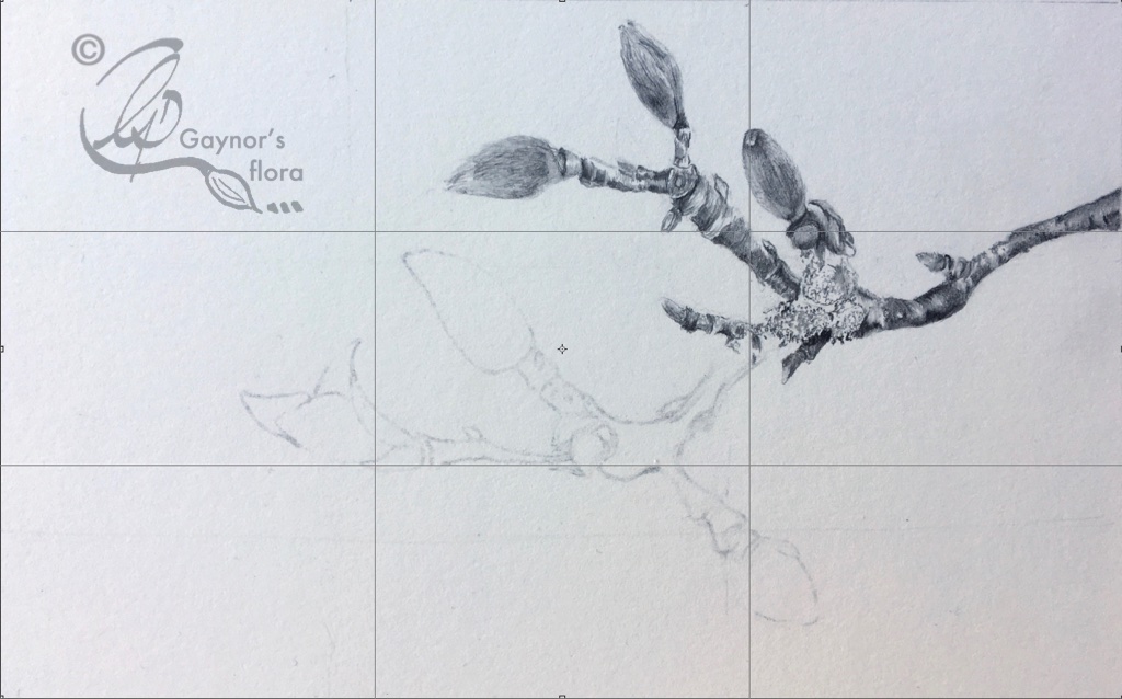 So finally, why am I so chuffed? Well, those who chose to do the Magnolia buds in watercolour, actually mastered the dry-ish brush technique that I use. Many do give up on this because the issue is the water/pigment mix, and taking care of brushes and picture at the same time. But I think the part giving me the biggest thrill were the compositions. I have superimposed two of the pictures with the three-by-three golden section divisions that help to find where the focal point is best placed. The eye was drawn in particular to these two pictures in main because of their composition, but also their fluffy buds. Remember they are half finished, but they just show how a well planned composition can have a good effect on completing a picture. Do you agree?