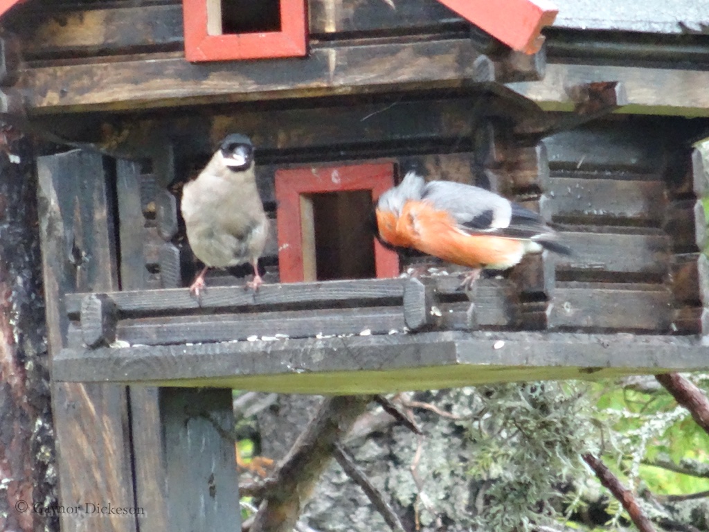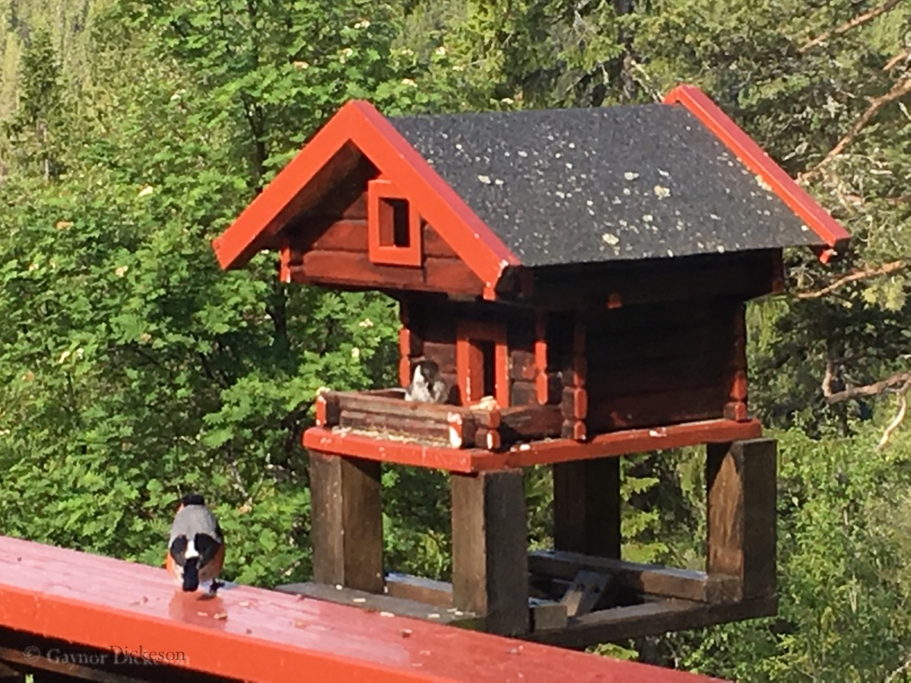 The temperature difference and the incredible invasion of gnats notwithstanding, we had a really super two-week period. I found all the plants that I had chosen to include – which I will come back to in a later blog. But my main distraction was the two ‘bird’ houses just outside the cottage, one of them directly outside the kitchen window where I was working. The pictures are just some of the animals and birds that were constantly at the table.