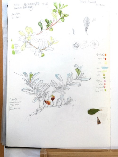 ABBA wants to encourage botanical art in relation to our native flora. As I intend to paint the series on vellum, I will be using this medium on the ABBA stand at the RHS. I have a nice little plant of the Bearberry with the beginnings of small flowers. The image is already transferred to a small piece of vellum which will be ideal to practice on and make decisions about which colours to use.