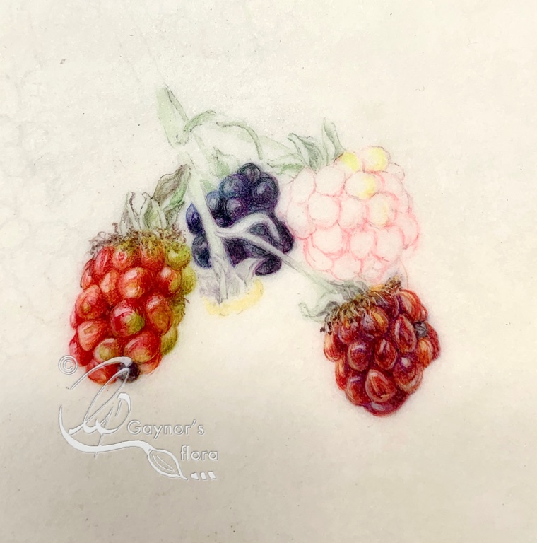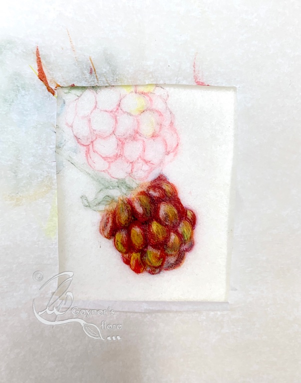 I will be painting on natural vellum when I do my RHS series and it is definitely more difficult to remove some pigments from this, than to remove from Kelmscott vellum. The blackberry is on Kelmscott vellum and I had absolutely no problems lifting any of the pigments from this. But I had to be very careful and not use more water than necessary. Even being careful, I could still ‘feel’ a slight difference when re-painting these areas.