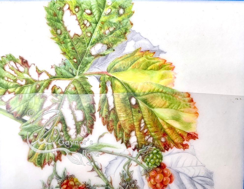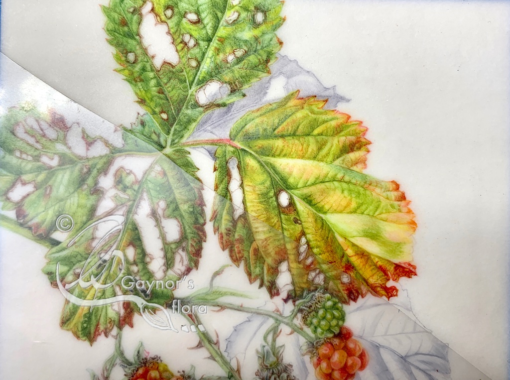 This blog is about all the mistakes I made whilst painting the Autumn Blackberry Branch on vellum. Above is the finished piece.