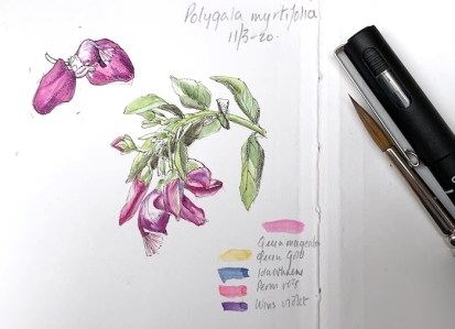 During the week I had my last botanical art workshop which had been brought forward from next week. The subject was the Perpetual Journal, something that was developed, taught and promoted by Lara Call Gastinger in the US. Lara has been very generous with this and encourages everyone to do something similar.