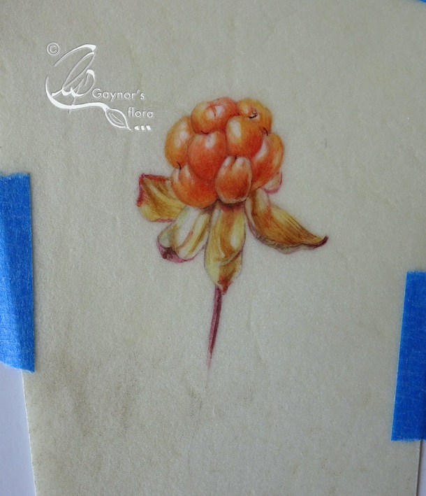 With Empetrum nigrum the leaves actual size are about 2mm long and the unripe fruit is about 4mm. I have had to vary the hardness of the pencil used so that I get clean lines, rather than gritty ones. It doesn’t seem to matter if I use my most expensive pencils or not as it is the surface of the vellum that decides. Sometimes I use the pencil first, if too pale I paint a layer of water-soluble graphite on top, then finish off with another layer of pencil, finally lifting off loose graphite and ’fixing’ it with water. It certainly is not as straight forward as using graphite on paper.