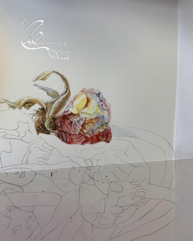 The thought of doing this felt very uncomfortable as I have noticed that some artists who suddenly go large do not increase the amount of detail and the picture doesn’t do the plant justice. I have drawn and painted parts of some compositions scaled up so that the viewer can actually see the detail, but have never done a whole painting like this. Was this going to work for me?