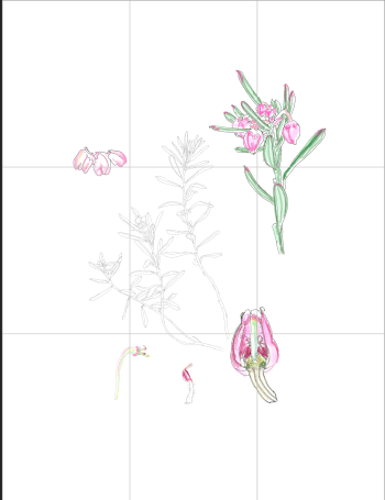The following pictures are are photos taken at different stages, but as the painting is not finished I will need to come back with additional blogs to show you the rest of the process. By the way, the graphite line drawing in the centre is a habitat drawing showing the plant at its natural size.