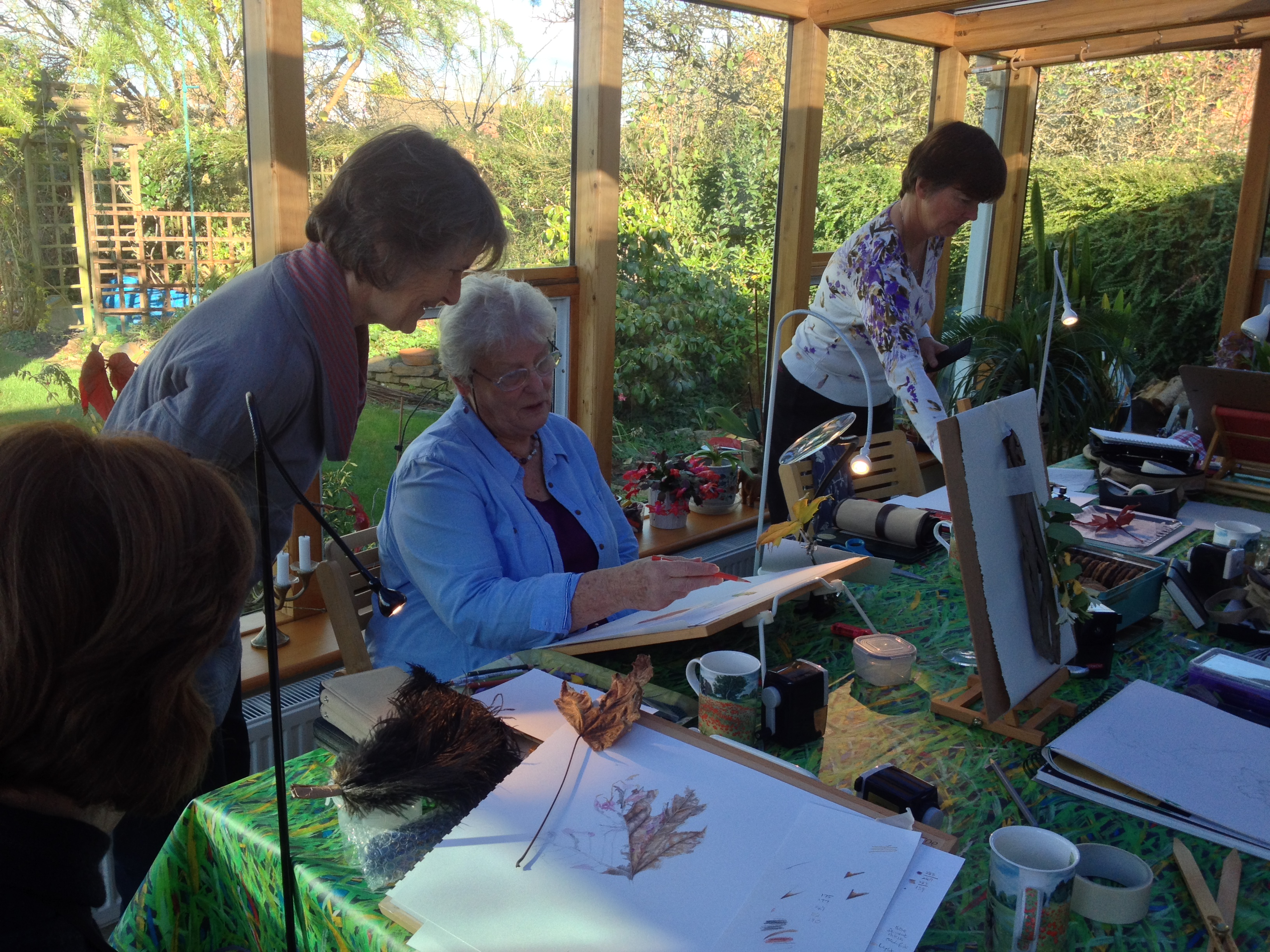 All of the students really wanted to improve on their coloured pencil techniques and even on the first day I think that there will be some lovely results. You will see from the following picture that everyone is very willing to share knowledge and that makes for an even better workshop.