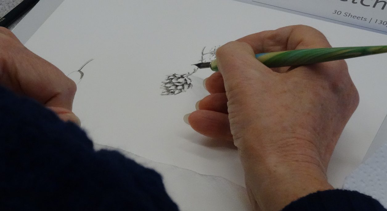 This seems a very busy time of year! Two weekends ago I had a pen and ink workshop with IAPI(Institute of Analytical Plant Illustrators), and this last Saturday I had my last workshop with SFP (Society of Floral Painters). This coming weekend will be a three-day workshop in Bosham – Colour in the Hedgerows. This will be the last workshop before I travel to Pittsburgh to teach a workshop at the ASBA (American Society of Botanical Artists) annual conference.